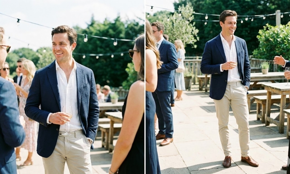 | Sako i chinos pantalone | opuštenije svadbe | uredan ali neformalan izgled |